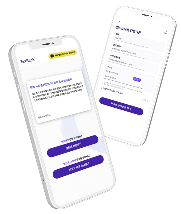 ‘택스백(TaxBack)’은 국내 최초로 개발된 양도소득세 환급 서비스로, 사용자가 쉽고 간편하게 양도소득세를 조회하고 신청할 ···